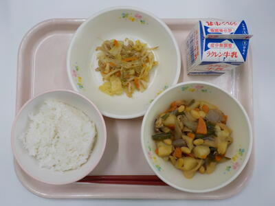 キャベツともやしの煮浸しは、新鮮な野菜をたっぷりと味わうことができました。五目豆は、豆の硬さが丁度良く、とてもおいしい給食でした。ごちそうさまでした。