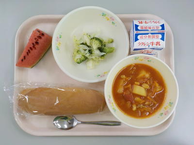 ポークビーンズは、豚肉、豆、ジャガイモの湯で加減が丁度良く、トマト風味が引き立つとてもおいしい給食でした。ブロッコリーのサラダも、野菜の苦みが全くなく、とても食べやすかったです。ごちそうさまでした。