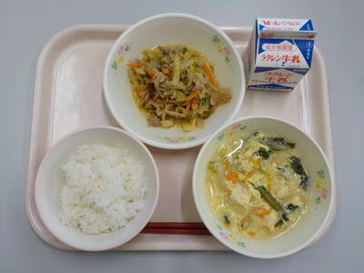 かきたま汁は、卵がフワフワとした食感で美味でした。焼肉は、噛んだとき口の中で焼肉の旨味が広がり、とてもおいしい給食でした。ごちそうさまでした。