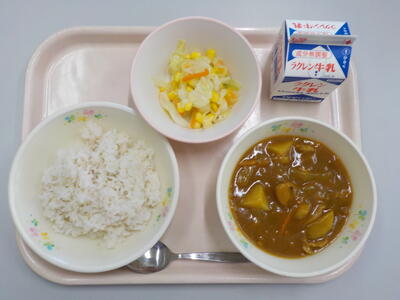 コールスローサラダは、色どりがあざやかで野菜がツヤツヤしていて美味でした。チキンカレーは、コクがありとてもおいしい給食でした。ごちそうさまでした。