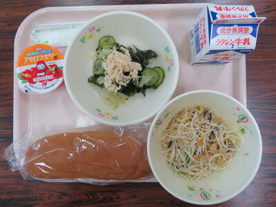 きゅうりと春雨の酢の物はさっぱりとしていて暑い日にぴったりのメニューでした。筑前煮はレンコンがシャキシャキしていて、とてもおいしい給食でした。ごちそうさまでした。