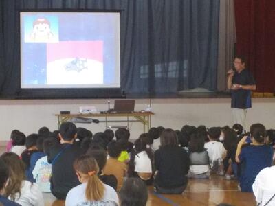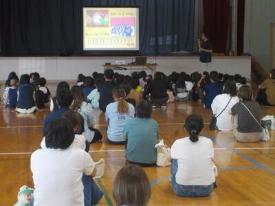 昨日は、学校歯科医のみくりや歯科医院の皆様にご来校いただき、1年生ファミリー歯磨き教室を実施しました。前半は体育館で虫歯について学び、後半は教室で歯磨きの仕方を学びました。お家の人も一緒で、1年生の子どもたちがニコニコしながら学ぶ姿がなんともほほえましかったです。歯磨きのポイントを教えていただきましたので、ぜひ家庭でも実践してほしいと思います。