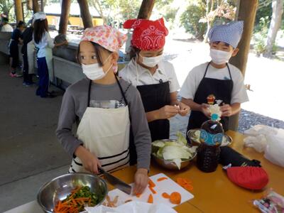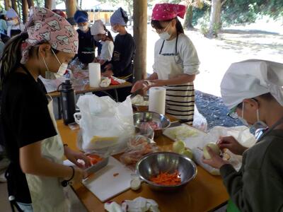 焼きそばづくりでは、野菜を切ったり火をおこしたり、普段あまりしたことのない作業だったかもしれませんが、自分のできることを考えながら動く姿が印象的でした。