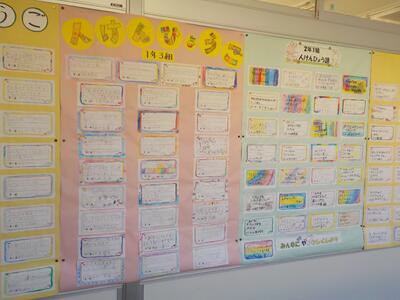 2階廊下に、一人一人が作った人権標語を掲載しています。