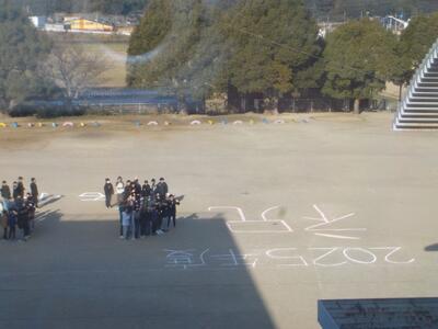 6年生ドローン撮影 投稿: 口石小学校 (17:18) ☆地域を愛し、豊かな心と進んで学ぶ意欲を持ち、明るく生活する子どもの育成☆ 昨日は、6年生がドローン撮影を行いました。「祝150年」の文字に、6年生全員で立ち、ドローンで撮影し、とてもいい思い出となりました。広報誌や卒業ムービーの出来上がりが楽しみです。 早朝より極寒の中準備をしてくださった広報部の皆様、本当にありがとうございました。