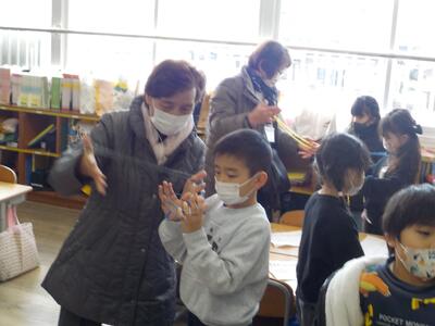 1年生昔遊び 投稿: 口石小学校 (01/28) ☆地域を愛し、豊かな心と進んで学ぶ意欲を持ち、明るく生活する子どもの育成☆ 今日は、老人会の方に来ていただき、1年生が昔遊びを体験しました。けん玉や竹馬、めんこやあやとりなど、子どもたちはとても楽しそうでした。寒い中に、ゲストティーチャーとして子どもたちに優しく教えてくださった老人会の皆様、ありがとうございました。