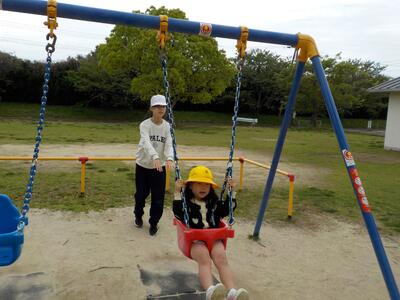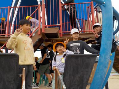 でんでんパークでは、1年生と6年生が一緒に遊具で遊ぶ姿が何ともほほえましかったです。他の学年も、新しいクラスで一緒に遊んだりお弁当を食べたりして、クラスのつながりを深めることができました。